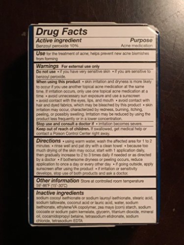 -. Feature : Compare to PanOxyl Bar 10% - 4 oz / Active Ingredients: Benzoyl Peroxide (10%). Purpose: Acne Medication. Inactive Ingredients: Sodium Cocoyl Isethionate or Sodium Lauroyl Isethionate, Stearic Acid, Sodium Tallowate, Coconut Acid or Lauric Acid, Water, Sodium Isethionate, Ethylene/VA Copolymer, Zea Mays (Corn) Starch, Sodium Cocoate or Sodium Palm Kernelate, Glycerin, Titanium Dioxide, Mineral Oil, Cocamidopropyl Betaine, Tetrasodium Etidronate, Sodium Chloride, Tetrasodium EDTA.