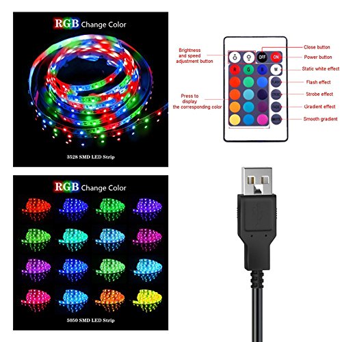 - Super bright SMD5050 (a better model than 3528) RGB color changeable LED, flash, night....high intensity and reliability. With USB Cable (included).