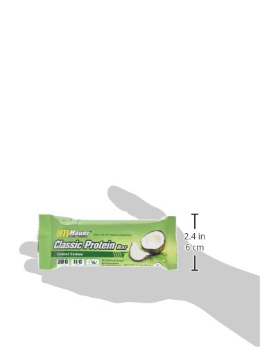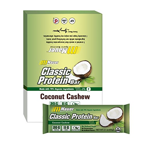 Mauer Sports Nutrition Classic Protein Bar, Coconut Cashew (65g), 19g Protein, 12-count