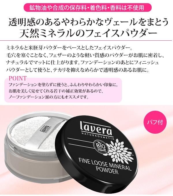 ミネラルと米胚芽パウダーをベースとしたフェイスパウダーです。毛穴を塞ぐことなく、軽い質感のパウダーがお肌に密着し、ナチュラルでマットに仕上がります。ファンデーションのあとにフィニッシュパウダーとして使用したり、ファンデーションを塗らずに使用することもできます。ふんわりやわらかい印象なので、ノーファンデーション派の方にもオススメです。 |