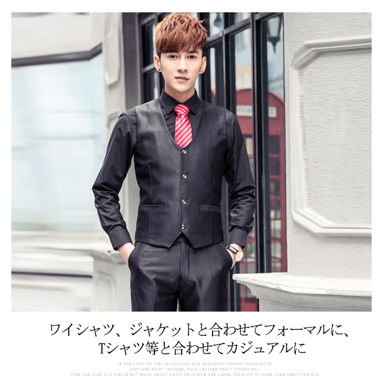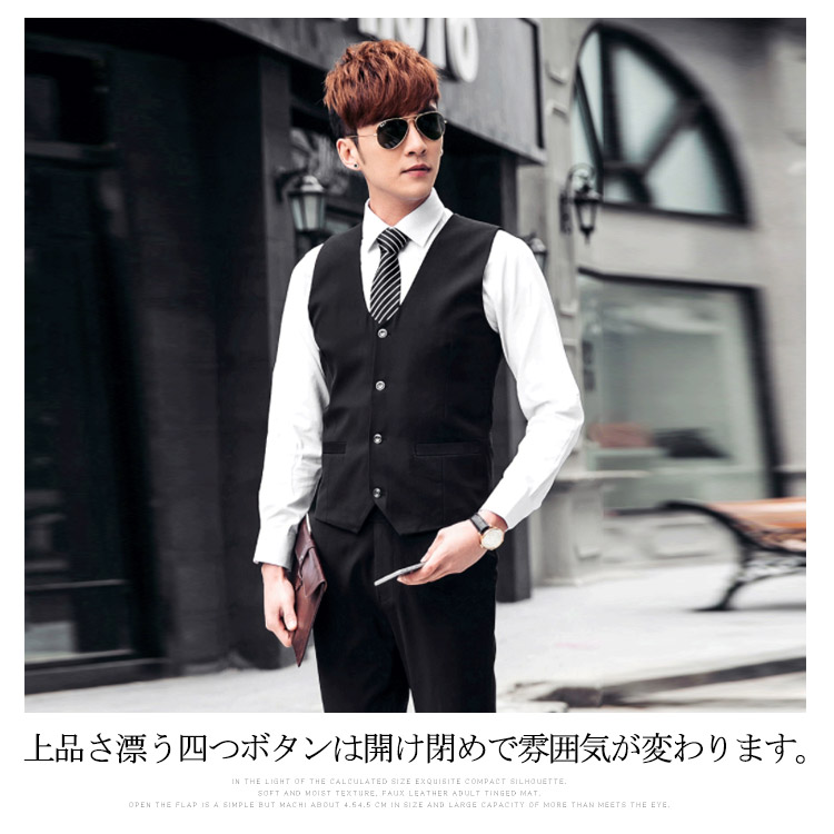 | ベーシックカラーからトレンドカラーまで全13色展開。高級感のあるスーツ素材を使用したジレベスト!全体のラインがとてもキレイでスマートな印象に。上品さ漂う四つボタンは開け閉めで雰囲気が変わります。ワイシャツ、ジャケットと合わせてフォーマルに、Tシャツ等と合わせてカジュアルにスタイルに合わせて様々な着こなしが出来る定番アイテムです♪ | |