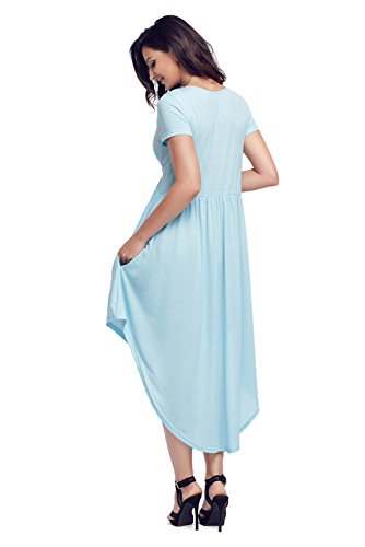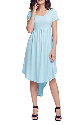 This lightweight, High low dress is perfect for those carefree summer days! round neck dresses short sleeves.