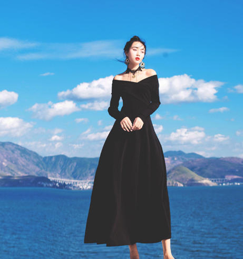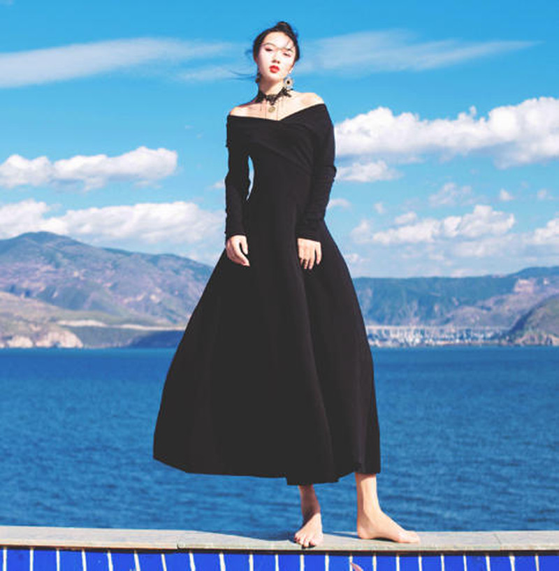 ♢ポイント♢ オフショルデザインがセクシーなロングワンピース。 エレガントな雰囲気になるので御呼ばれやパーティにも◎