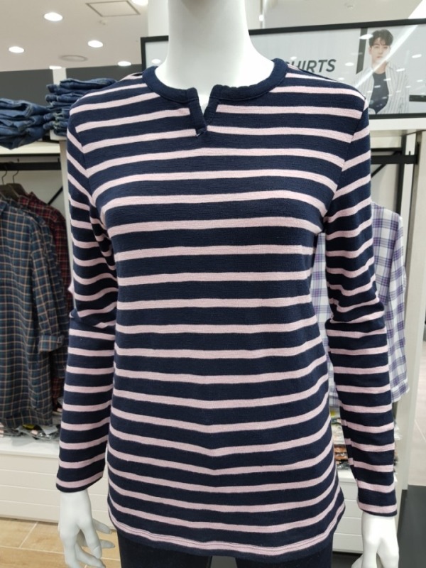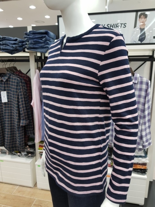 여성 슬럽 헨리넥 티셔츠입니다.스탠디한 핏으로 신축성이 좋아 착용감이 편안한 티셔츠입니다적당한 두께감으로 간절기에 착용하시기 좋습니다