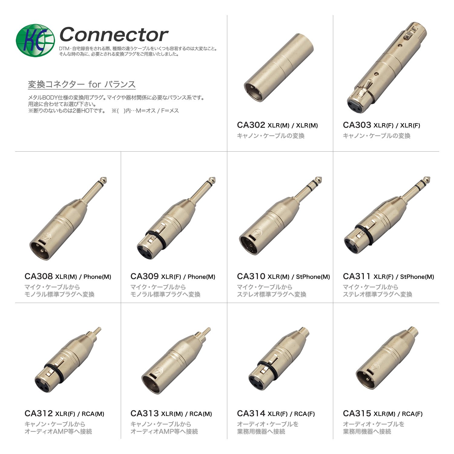 Convert microphone cable to monaural standard plug XLR (F) Phone (M)