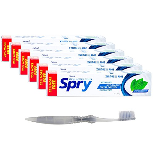 -. Feature : Save with Multi-Packs of Spry Peppermint Toothpaste FLOURIDE FREE / Includes a SoFresh Flossing Toothbrush (color may vary from image) / Packs an invigorating natural peppermint flavor / Recommended by Dentists Worldwide to help reduce bacteria and fight cavities / All natural and sweetened with 100% non-GMO Xylitol
