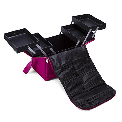 Professional Makeup Bags Cloth Portable Artists Cosmetic Case Shoulder-style Cosmetics Boxes (Rose pink)