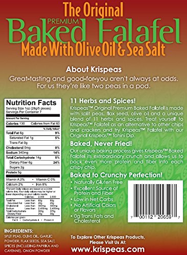 High Protein Snack by krispeas - Low Carb, Vegan & Gluten-Free Spicy Split Pea Baked Falafel Chips, 7 oz