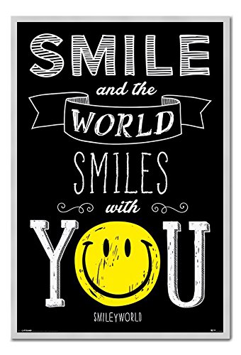 -. Title : Smile & The World Smiles With You Poster Magnetic Notice Board Silver Framed - 96.5 x 66 cms (Approx 38 x 26 inches)