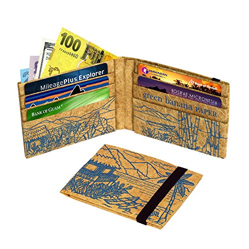 -. Binding : Apparel -. Brand : Green Banana Paper -. Department : mens -. Feature : 100% Vegan leather forged from natural banana fibers / Features 6 card slots, 2 secret pockets, 1 bills compartment, and elastic closure / Measures 3.4 inches tall x 4.25 inches long x 0.5 inches wide (10.8cm x 8.5cm x 1.25cm) / Packaged in a beautiful natural banana fiber paper pouch with zipper / Ethically manufactured at our open air eco-factory in Kosrae, Micronesia -. ProductGroup : Apparel -. ProductTypeName : ACCESSORY -. Size : Medium -. Title : Men's Banana Fiber Paper Bifold Wallet by Green Banana Paper