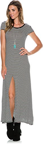 Product DescriptionA beautiful mini stripped cap sleeve maxi dress with a fitted upper and a low back scoop and a slit up the front center.0