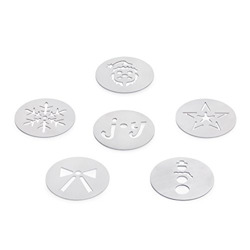 • Set includes six festive disks for holiday inspired cookies, including: Joy, Snowman, Bow, Star, Snowflake, and Santa