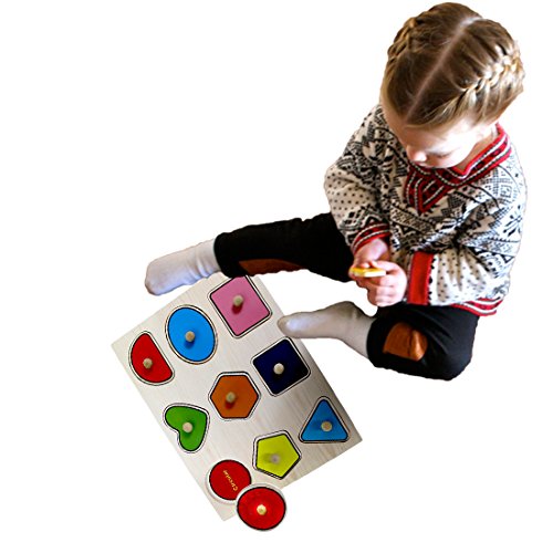 -. Feature : Dazzling Toys kid's favorite wooden pegged shape puzzle. / A great way to teach your child the shapes and their names. / Board measures 12 x 9 inches. Shapes measure 2 to 4 inches / Great educational gift idea for kids ages 3-6. / Made from high quality wood.