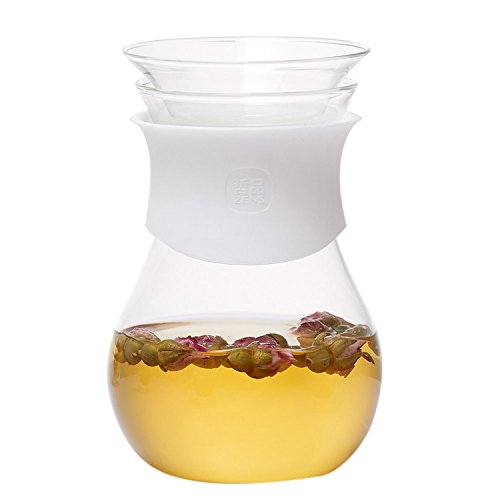 -. Title : ZENS Modern Flower Glass Teapot Loose Leaf and Flowering Tea Pot Travel Borosilicate with Silicone Infuser for Blooming Tea 21oz/600ml
