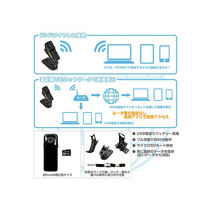 원본상품명: 超小型WiFi見守りカメラ(スマホだけで簡に設定してアクセス)。ビデオ&音で見守り