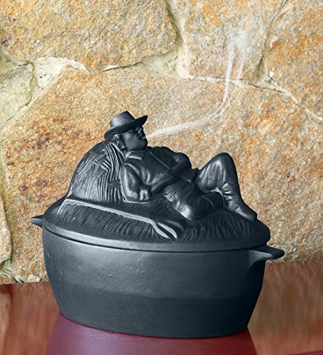 Studio : Plow Hearth Publisher : Plow Hearth Binding : Kitchen Product Description Plow Hearth exclusive - our cast iron wood stove steamer with Sleeping man is the perfect way to add much needed moisture to winter's dry air. Plus, it adds some humor to your decor with a design that says it's OKAY to Fall asleep on the job. When set atop your wood stove, steam will begin to escape from the the snoozer's mouth, just like he's snoring. The timeless design is perfect for your favorite napper! this cast iron steamer holds 21/2 quarts of water so it won't run dry when left on the stove overnight. The matte porcelain enamel finish resists rust and helps preserve its appearance. Size: 12"l x 7"W x 9"H. 0