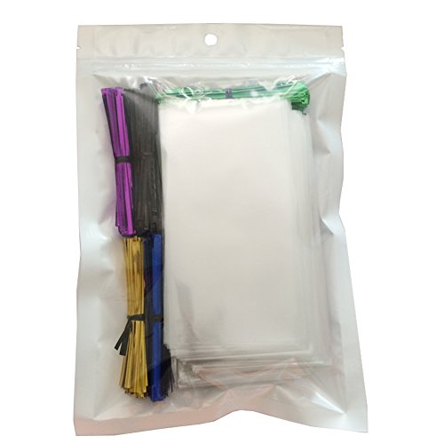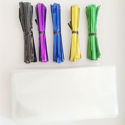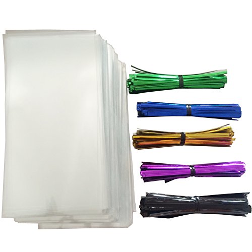 Product Description The Ubaker cellophane treat bags provide unrivalled clarity for storing, preserving, and presenting food contents, including wedding party supplies, candy, cake pops, nuts, chocolate, cookies, as well as other non-food materials. Our see through treat bags can also be used to showcase treats and edibles in farmers markets, retail stores, restaurants, and bakeries. Vapor Free Bags: With excellent vapor blocking properties, our cellophane treat bags prevent moisture from getting to the contents, keep food materials fresh, prevent the manifestation of molds, and significantly extend the shelf life of food materials. Attractive Colors: Our treat bags come with 500 3" Six mix colored twist ties, giving you a healthy choice when wrapping contents. Wrapping items and food suddenly becomes more interesting and fun, while chocolate, cookies, and candies are more attractively wrapped for parties and events. Strong Reusable Bags: Our strong treat bags and twist ties are vastly reusable and resealable. Clean after each use, keep sealed, and you can reuse conveniently. With a very high tensile strength, you won't have to worry about the bags tearing under the weight of contents. Money Back Guarantee: Your satisfaction is our priority, and making sure you get the maximum value for your money is our primary aim. Hence, we will provide a full refund if you become dissatisfied with this item for any reason within 30 days of usage. Package includes: 500 2.5x5"Treat Bags 500 3" mix colored Twist Ties