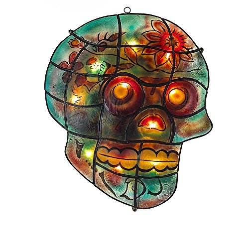 Kurt Adler HW1704 10-Light Halloween Capiz Painted Skull
