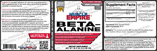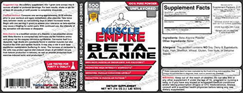 -. Binding : Health and Beauty -. Brand : Muscle Empire -. Label : Guardian Wholesale -. LegalDisclaimer : These statements have not been evaluated by the Food & Drug Administration. This product is not intended to diagnose, treat, cure or prevent any disease. The information herein is NOT a substitute for medical advice. ALWAYS consult your doctor or pharmacist before using any of our products. -. Manufacturer : Guardian Wholesale -. ProductGroup : Health and Beauty -. ProductTypeName : HEALTH_PERSONAL_CARE -. Publisher : Guardian Wholesale -. Studio : Guardian Wholesale -. Title : Beta-Alanine - Muscle Empire Supplements