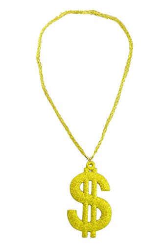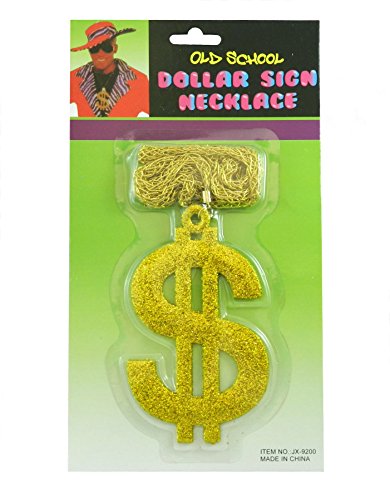-. Brand : Candy Pop -. Color : Gold -. Department : mens -. Feature : Includes one dollar sign necklace -. ProductGroup : Apparel -. ProductTypeName : ADULT_COSTUME -. Size : Standard -. Title : 80's Style Pimp Dollar Sign Necklace -. UPC : 095225744693