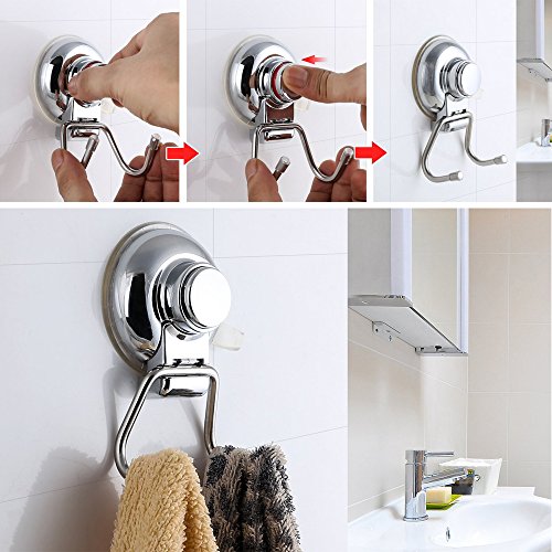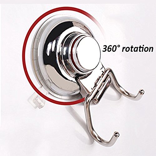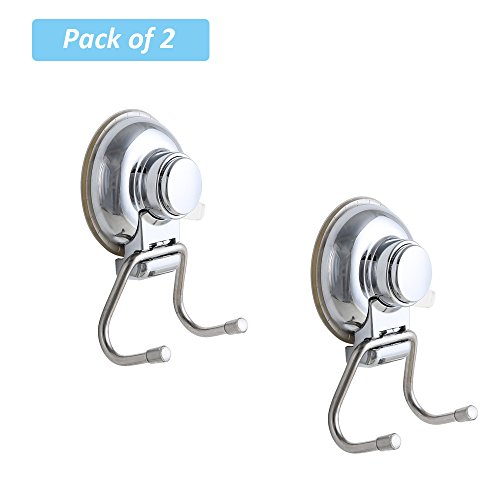 Pack of 2, Onerbuy Stainless Steel Super Suction Cup Dual Hooks, Heavy Duty Bath Kitchem Utility Towel Hooks Holder