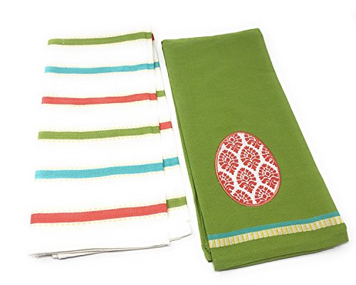 Deco Egg and Spring Stripe Dish Towels Set of 2