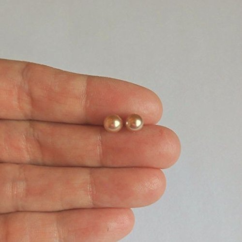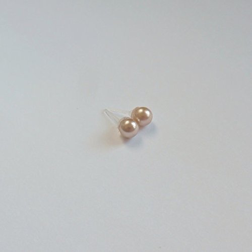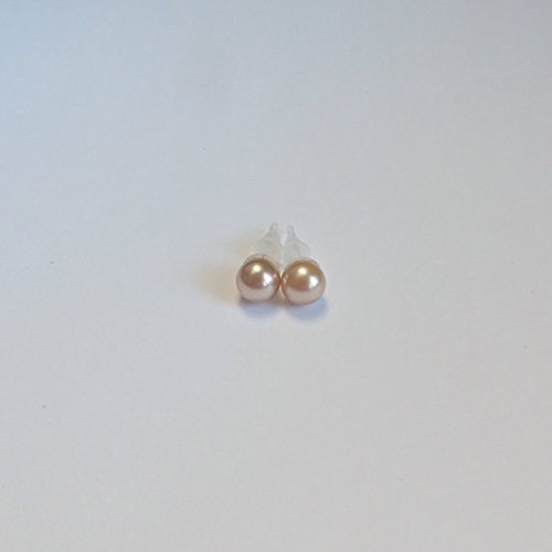 -. Title : 6mm Champagne Simulated Pearl Earrings on Hypoallergenic Plastic Posts for Metal Sensitive Ears