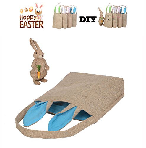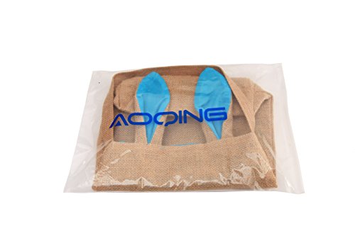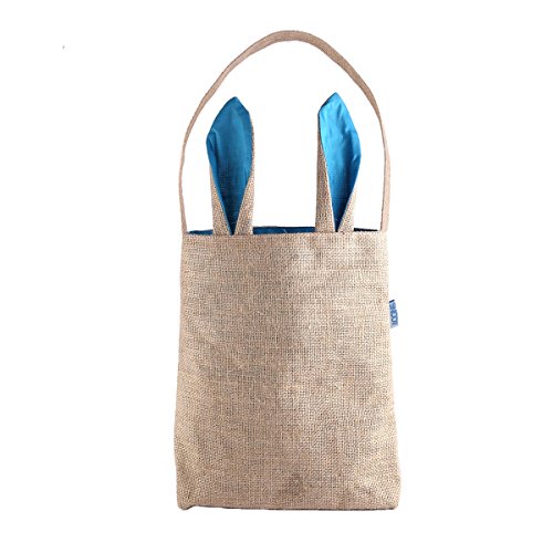 AOQING Easter Bunny Bags Dual Layer Lovely Bunny Ears Design Burlap Cloth Material Easter Gift Bag - Funny DIY Gift Bag for Your Baby ( Jute / Light Blue)