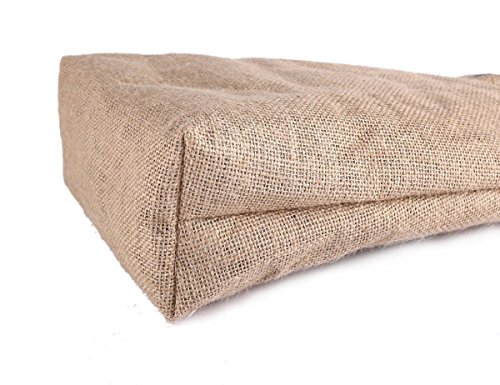 1. Reusable and Durable Material - Natural jute cloth outside and polyester cotton inside. Specification - 12 x 9.5 x 3 inch, Bear 22 lbs, Weight 5 OZ. It is perfect to carry eggs, candy and gifts.