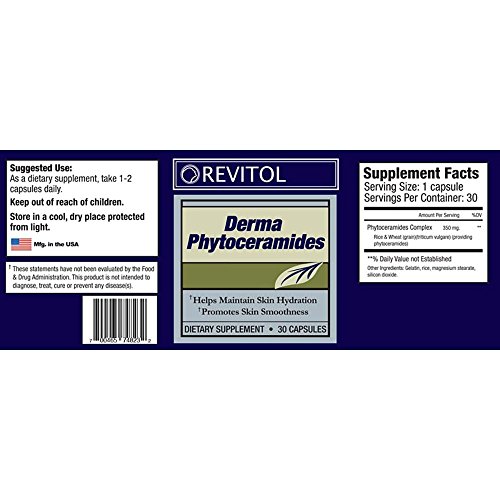 -. Binding : Health and Beauty -. Brand : Revitol -. Feature : Increase Moisture Retention / Firmer Skin in less than 30 Days / Fundamental Wrinkle Fighting Power / Made in USA -. IsAdultProduct : 0 -. Label : west coast labs -. Manufacturer : west coast labs -. ProductGroup : Health and Beauty -. ProductTypeName : HEALTH_PERSONAL_CARE -. Publisher : west coast labs -. Studio : west coast labs -. Title : Revitol Phytoceramides Supplement - 3 Pack