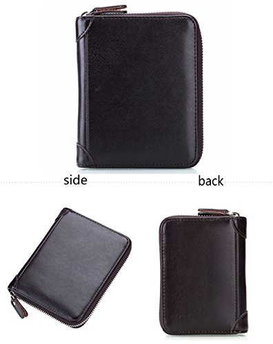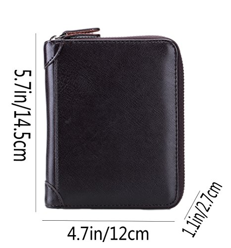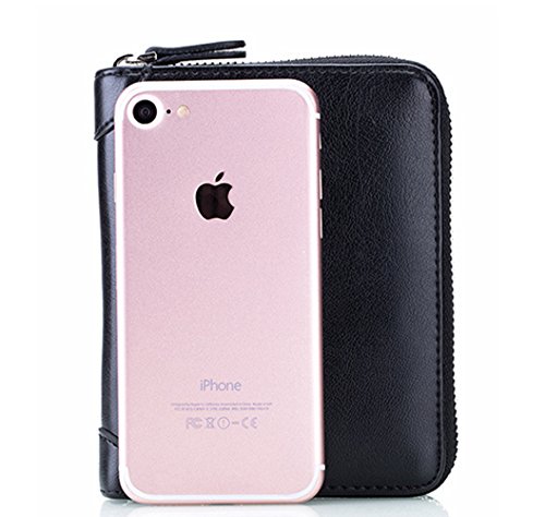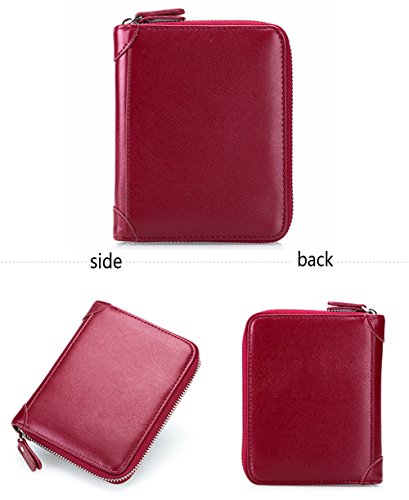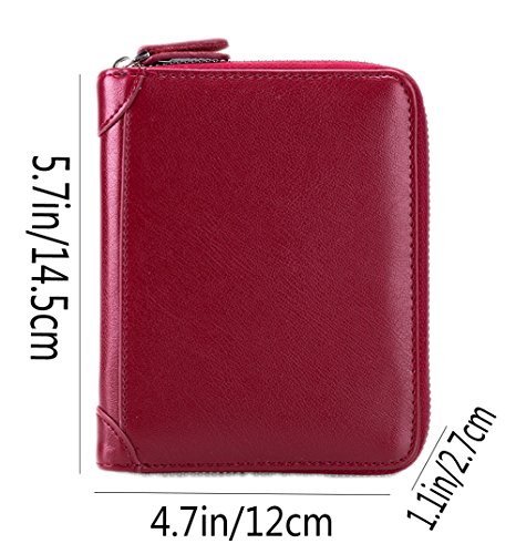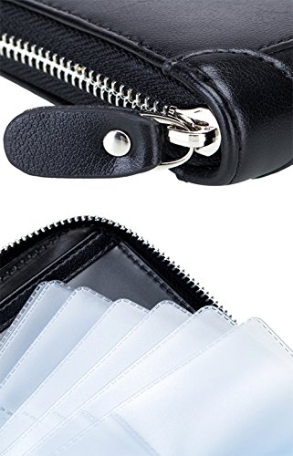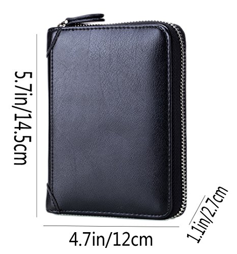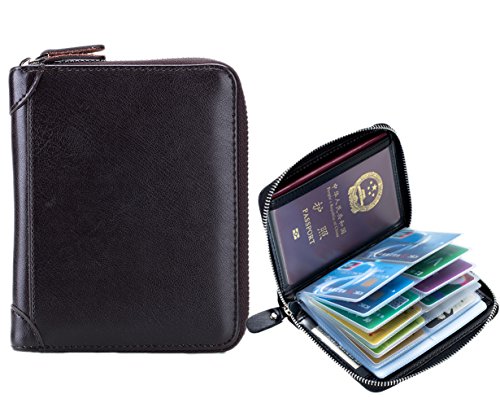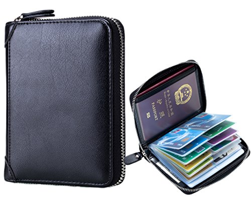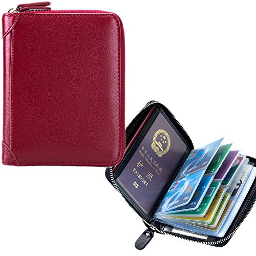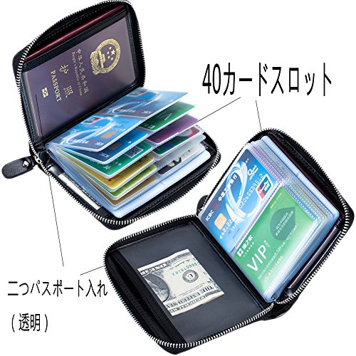 Product Description The RFID card wallet is well made of high quality leather, attractive, durable, and it is lined with very nice satin kind of material. The size is 4.7x5.7x1.1inch (12x14.5x2.7cm), 40 spaces for cards and 2 extra clear pockets for passport wallets.The zippers closure keep cards from falling out, and looks daunting but actually runs very smoothly and it's sturdy. The RFID design will prevent more casual would be thieves that would steal your card info as you walked by though, as long as you keep them in your wallet. The wallet is great for small or big handbags and secures and organizes all your cards in one place. 0