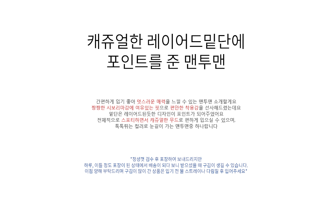 .같은 사이즈라도 체형에 따라 핏감이 조금씩 다를 수 있습니다.