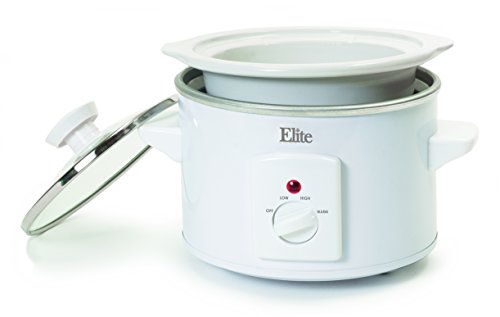 The Elite Cuisine 1.5Qt. Mini Slow Cooker is perfect for cooking and serving small one-pot meals and appetizers such as soups, stews, meatballs, dippings, and sauces. It's a great kickoff for a fondue party or where everyone prepares their favorite dip in their 1.5Qt. Mini Slow Cooker. This versatile little appliance can be a single person's best companion as well the all-star at your next Superbowl party. It features low and high temperature settings, a keep-warm setting allowing you to keep your meal hot and fresh before it’s served and an attractive white finish. It includes a removable inner stoneware pot that’s easy to clean, a tempered glass lid with metal rim for easy viewing of cooking cycle and cool-touch handles and knob for safe handling.Feature