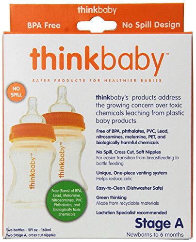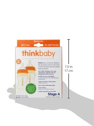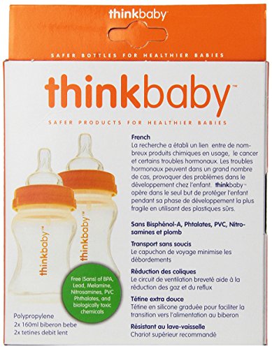 -. Title : Thinkbaby 2 Pack BPA Free Vented Baby Bottles, 5 Ounce, Natural/Orange