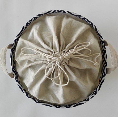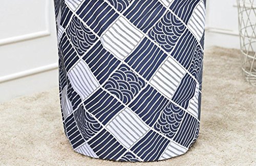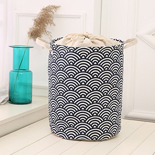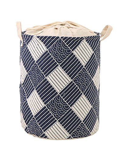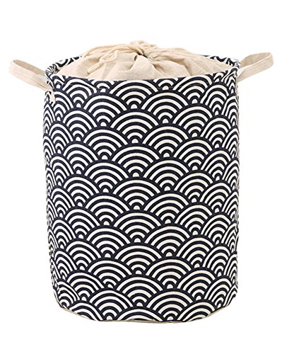 Songsongstore 13" x 16.5" Round Laundry Hamper Bucket Drawstring Waterproof Foldable Storage Basket Dirty Clothes Sorter Bin for Home,College and Camping(White&Blue)