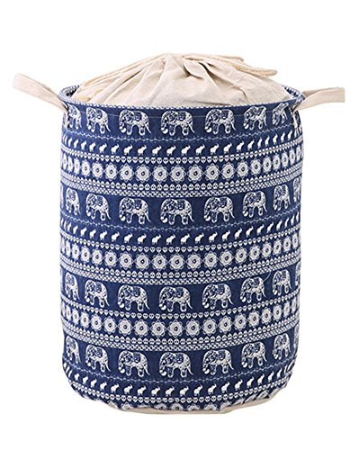 Songsongstore Round Laundry Hamper Bucket Drawstring Waterproof Foldable Storage Basket Dirty Clothes Sorter Bin for Home(Elephant)
