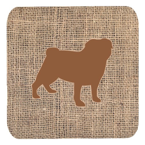 Caroline's Treasures BB1112-BL-BN-FC Pug Burlap and Brown Foam Coasters (Set of 4), 3.5" H x 3.5" W, Multicolor