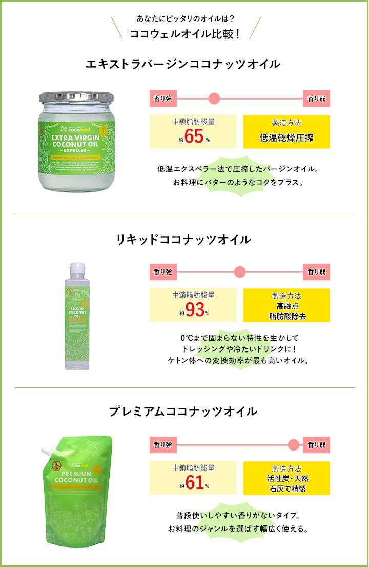 ココウェルのココナッツオイルはトランス脂肪酸を全く含んでいないため、安心してお使いいただけます。