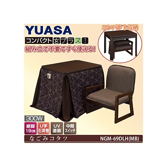 원본상품명: ユアサ おひとり用コタツ 3点セット(69×55cm)【暖房器具】YUASA なごみコタツ NGM-69DLH-MB