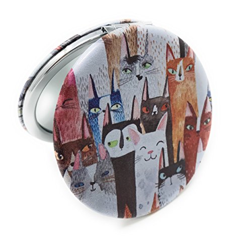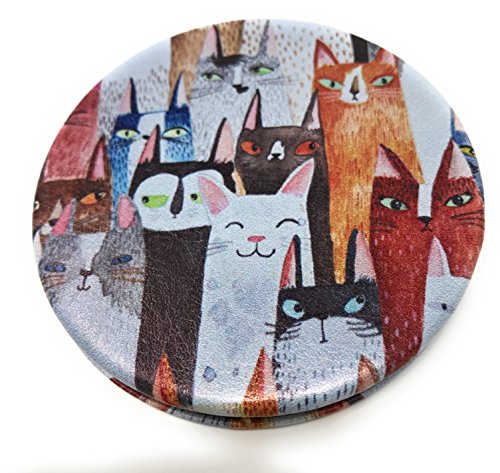 Purse Pocket Mirror - Whimsical Cats - 2 in 1 With 2X Magnification