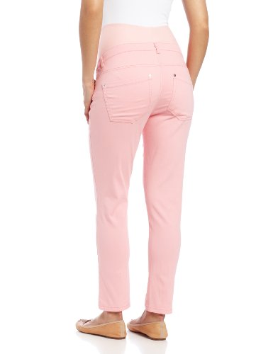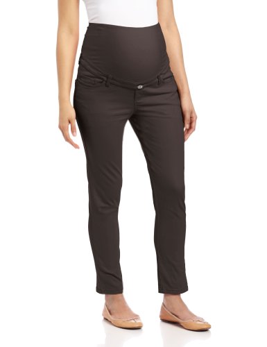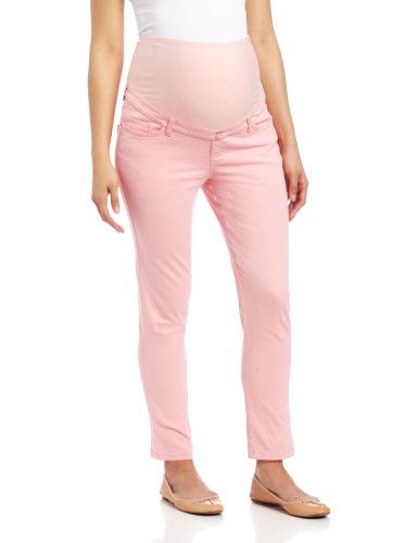 Cropped length maternity pant. Features traditional jean detailing, front/back and coin pockets, belt loops, shank button and fly stitching. This pant is skinny through the thigh and calf and has a deep comfort knit waistband. A great colored fashion crop pant for your maternity wardrobeFeature