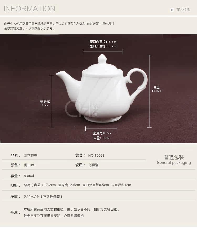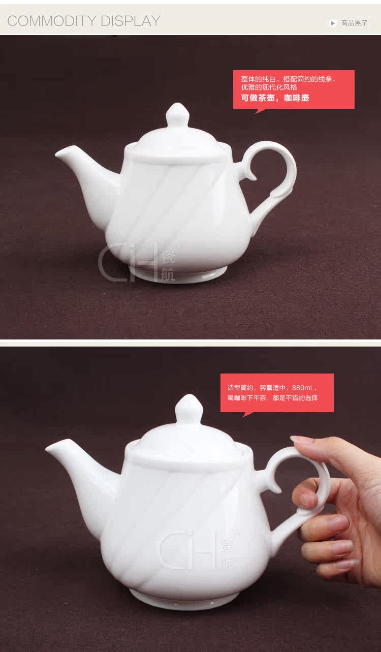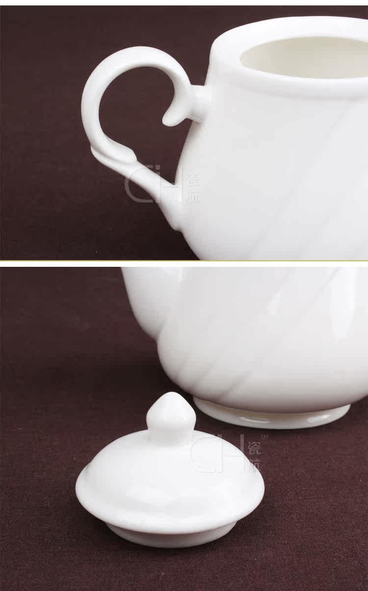 瓷航剑花茶壶纯白骨瓷咖啡壶创意欧式凉水壶餐厅用具酒店830ml