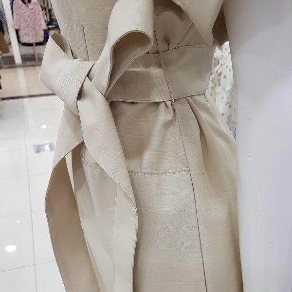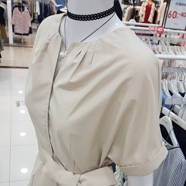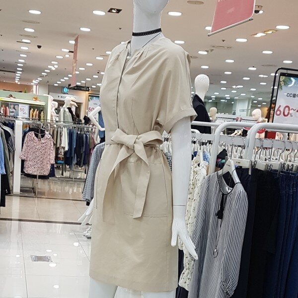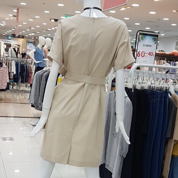 라이트베이지에 귀욤한원피스랍니다목선V트임에 셔링디테일은 여성스럽구요아웃포켓스탈에 사랑스럽고 세련하네요일자핏에 벨트로 라인잡아주셔용^^신축성 있고 넘넘 편하네요