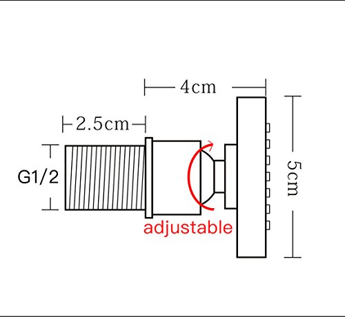 - Diameter: 2" (5cm), Connector: G1/2”, standard size, adjustable head.