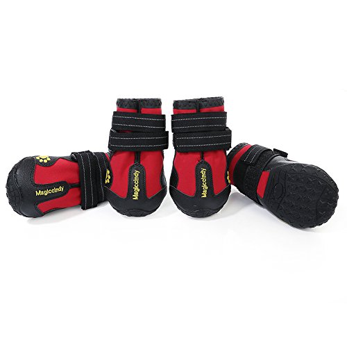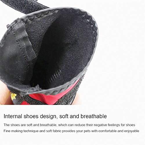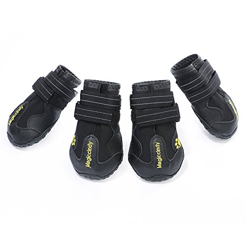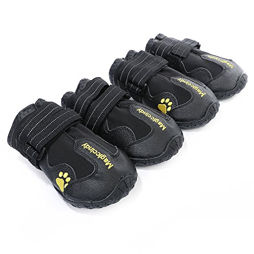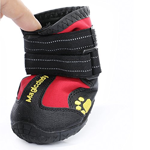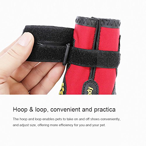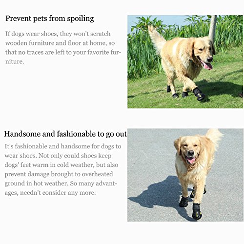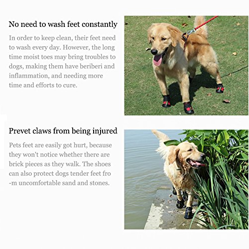 -. Feature : 1.XL: suitable for border shepherd, cocker spaniel, medium-sized Chow Chow and so on / 2. Protect the dog's claws and keep clean of the room,Reduce the frequency of washing feet for your dog, saving more time / 3. Products are made of waterproof material, and it is wear-resistant and breathable, making it more convenient for pet travel. / 4. The use of Velcro makes it convenient to put shoes on and off for dogs and adjust the degree of tightness. / 5.Precautions: It takes time to adapt to the shoes for dog, please be patient to wait.