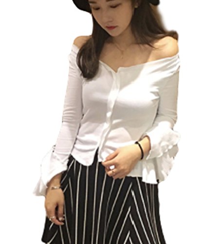 -. Title : 衿開き 大きめ セクシー 肩出し Tシャツ カットソー フレア スリーブ 長袖 プルオーバ レディース ウエア トップス