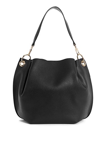 This pebbled faux-leather hobo bag features a slouchy silhouette, silver-tone hardware and a logo accent. Multiple interior pockets and snap closures. Removable logo charm.Feature