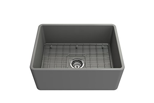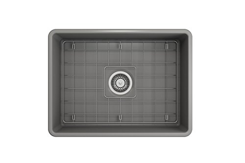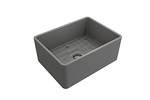 Classico Farmhouse Apron Front Fireclay 24 in. Single Bowl Kitchen Sink with Protective Bottom Grid and Strainer in M.Gray