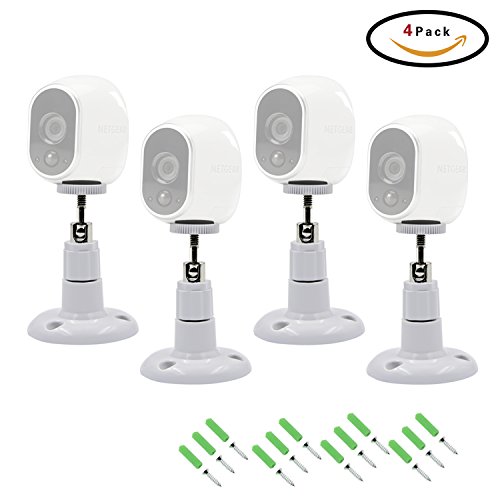 -. Feature : ★ Indoor/Outdoor Wall or Ceiling Mount for Arlo Smart Home Security Camera System & Other Camera Systems CCTV, DVR cameras installation, and so on.(Please note: Security Camera NOT INCLUDED, only Mount for sale) / ★Using environment: Indoor and Outdoor (Wall,Tree,Door,Corner,Baby bed and so on) / ★ Waterproof Plastic Material for Outdoor.White color / ★Easily adjustable with 360 degree swivel bearing & 90 degree tilt,support up to 5lbs / ★ Value Package: 4x Camera Wall Mount ,12x Screws, 12x Wall Plugs