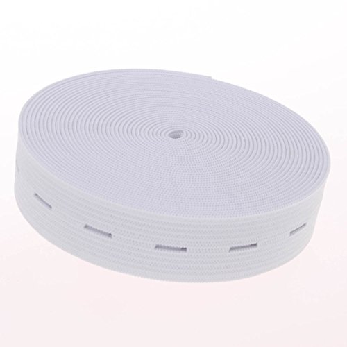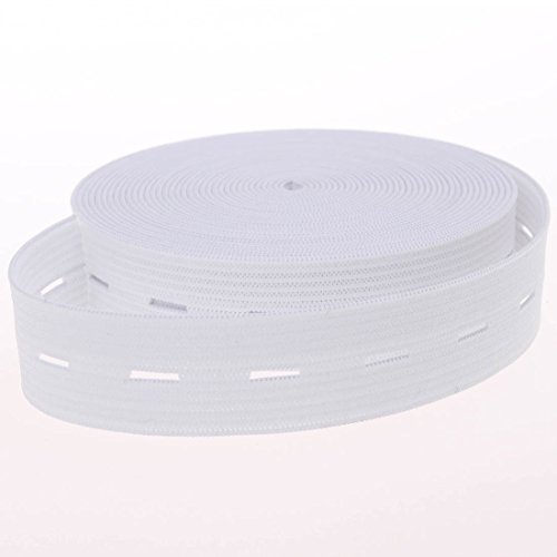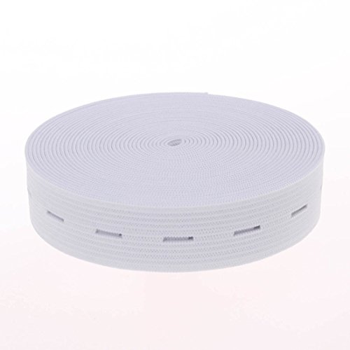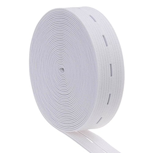 COTOWIN 3/4-Inch Wide White Knit Buttonhole Elastic 5 Yards + 5 Wood Buttons (11mm)